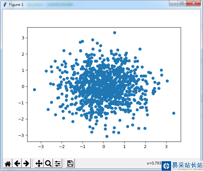 #散點圖from pylab import *n = 1024X = np.random.normal(0,1,n)Y = np.random.normal(0,1,n)scatter(X,Y)show()