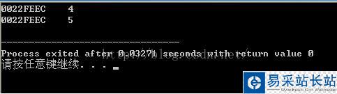 #include <stdio.h> int main(){ int x = 4; printf("%p %d/n", &x, x); x = 5; printf("%p %d/n", &x, x); return 0; } 我們大家再看一下運行結(jié)果: