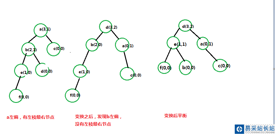 將不平衡的元素的左枝的最右節點變為當前節點,