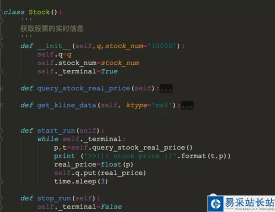這個stock我們希望外邊能控制它的運行和停止,在stock類的入口,我們加入了一個_terminal變量