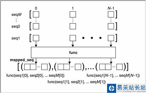如果函數是 None,自動假定一個‘identity'函數,這時候就是模仿 zip()函數,