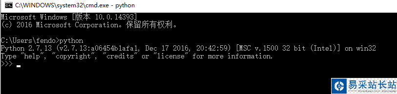 在命令行輸入python,出現如下的Python相關信息,就表示裝好了Python2.7.13