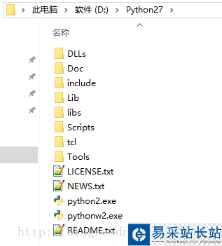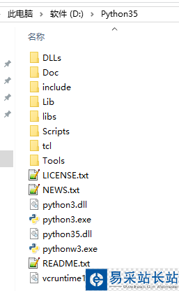 4、將python文件夾的python.exe和pythonw.exe改名,如圖所示,其他的諸如python27.exe, python3.5.2.exe之類的都刪了,看起來舒坦:)