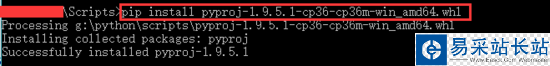 pip install pyproj-1.9.5.1-cp36-cp36m-win_amd64.whl