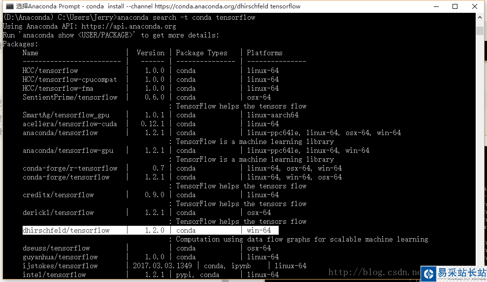 anaconda search -t conda tensorflow