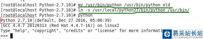 mv /usr/bin/python /usr/bin/python_old //將舊版本的python進行改名 ln -s /usr/local/python27/bin/python /usr/bin/ //建立軟鏈接