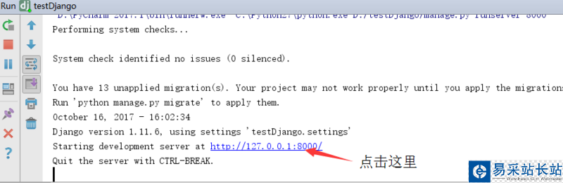 命令行的方式是:python manage.py runserver 127.0.0.1:8000