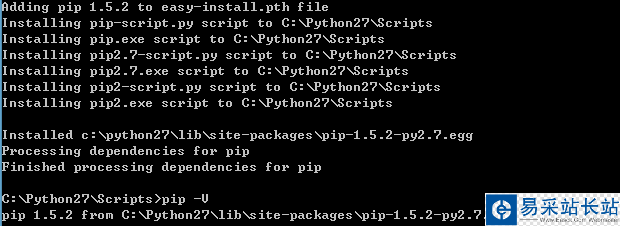 3.下載安裝Pip進入C:/Python27/Scripts目錄,執行以下命令來進行Pip的安裝。
