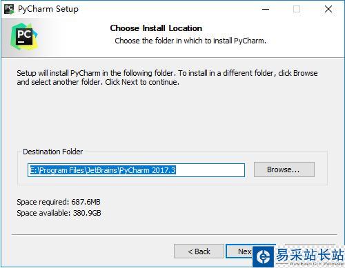 4、選擇安裝目錄,Pycharm需要的內(nèi)存較多,建議將其安裝在D盤或者E盤,不建議放在系統(tǒng)盤C盤: