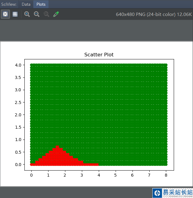 import numpy as npdef f1(px, r, a, b): return b - np.sqrt(r**2 - (px - a)**2)def f2(px, m, n): return px*n/mif __name__ == '__main__': r = 4 # 圓半徑 m = 8 # 寬 n = 4 # 高 a, b = (4, 4) # 圓心坐標 t = 100 # 精度 xs = np.linspace(0, m, 2*t*m) ys = np.linspace(0, n, t*n) # 半圓形 y1 = f1(xs, r, a, b) # 斜線 y2 = f2(xs, m, n) numin = 0 numtotel = 0 side = True # 是否計算邊框 for x in xs: for y in ys: if not side: if (x <= 0) | (x >= 8) | (y <= 0) | (y >= 4): continue numtotel += 1 if x >= 4: continue y1 = f1(x, r, a, b) y2 = f2(x, m, n) if y1 - y2 >= 0: if y2 - y > 0: numin += 1 if (y2 - y == 0) and side: numin += 1 elif y2 - y1 > 0: if y1 - y > 0: numin += 1 if (y2 - y == 0) and side: numin += 1 print(32*numin/numtotel)calc.py