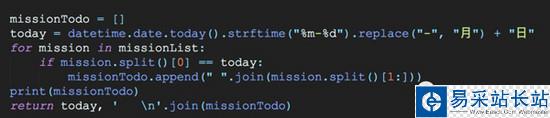 當然,有時候我們會在記事本里記錄很多需要辦理的事項,執行日期也會比較分散,但是沒必要每天對所有的待辦事項進行提醒。對此,我們可以篩選出當天需要辦理的事項進行提醒,這樣效果無疑會更好一些。任務篩選的基本思路是獲取系統當天日期,將它與各事項的待辦日期逐一進行匹配,代碼如下: