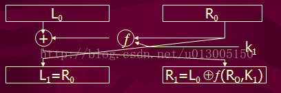 f函數(shù)作用于每輪的key值和每輪的待加密文本的右半部分,即Ki,Ri