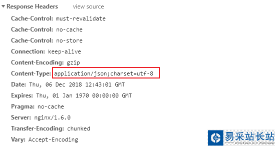 而Response Headers部分,可以看到緩存控制、服務器類型、返回內容格式、有效期等參數(筆者截圖所示,返回的為json文件):