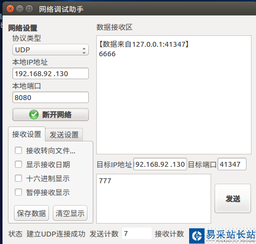 import socketdef send_message(udp_socket): # 輸入對方的ip/port dest_ip = input("請輸入對方的ip:") dest_port = int(input("請輸入對象的port:")) # 讀取輸入的數據 send_data = input('請輸入要發送的數據:') # 發送數據 dest_addr = (dest_ip, dest_port) udp_socket.sendto(send_data.encode('GBK'), dest_addr)def recv_message(udp_socket): # 接收數據 recv_data = udp_socket.recvfrom(1000) print("%s:%s" % (recv_data[1], recv_data[0].decode("utf-8"))) def main(): # 創建套接字 udp_socket = socket.socket(socket.AF_INET, socket.SOCK_DGRAM) while True: send_message(udp_socket) recv_message(udp_socket) # 關閉 udp_socket.close()if __name__ == '__main__': main()運行程序: