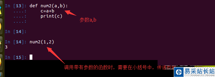 In [13]: def num2(a,b): ....: c=a+b ....: print(c) ....: In [14]: In [14]: num2(1,2)3