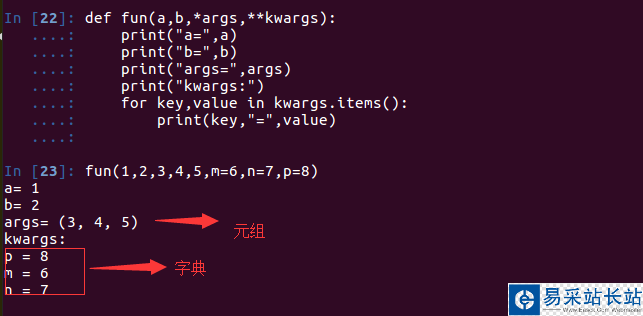 加入星號(*)的變量args會存放所有未命名的變量參數(shù),args為元組;