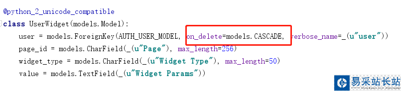 錯誤一:關聯(lián)關系ForeignKey引發(fā)的錯誤,打開xadmin文件中的模型文件models.py,凡是出現(xiàn)關聯(lián)關系字段的地方全部加上 on_delete=models.CASCADE , 如下圖所示: