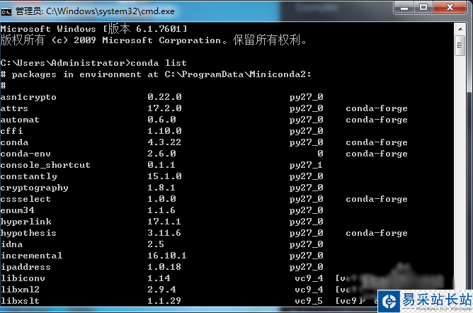 4、在cmd窗口中用conda list 命令檢驗conda是否安裝成功