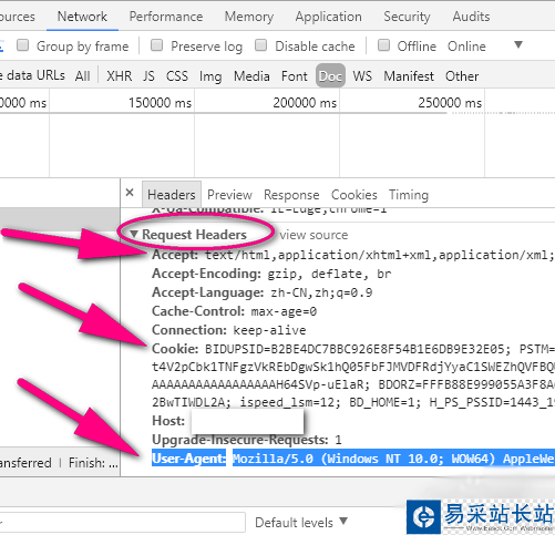 4、然后復(fù)制其中的user-agent,其他的cookie還有Accept可以要也可以不要,主要是偽裝成瀏覽器,所以我就用了user-agent