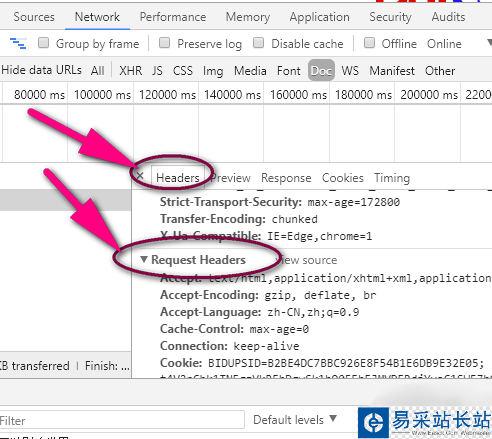 3、之后右邊有一個headers,點擊headers找到request headers,這個就是瀏覽器的請求報頭了。