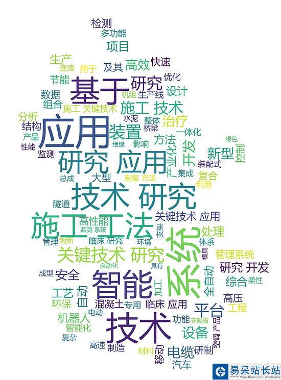 可以看到,智能設備、施工工法、系統(tǒng)平臺、電纜、機器人等都是出現(xiàn)較多的詞匯。