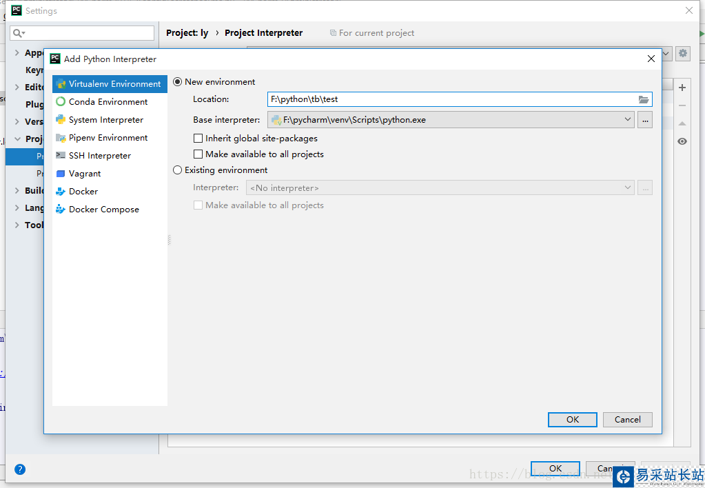 點擊 add, 在 Virtualenv Environment 和 System Interpreter 并選定找到本文給的 python 運行文件夾,Location 是自己建立的工作文件夾,里面為空,參考操作如下: