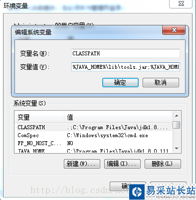 再新建一個變量名CLASSPATH的環境變量,變量值為:%JAVA_HOME%/lib/tools.jar;%JAVA_HOME%/lib/dt.jar