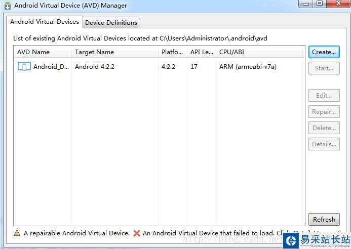 進到Android SDK的目錄,雙擊運行AVD Manager.exe