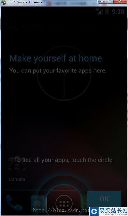 第一次啟動的時候會有點慢,要等幾分鐘,啟動以后就好了,模擬器剛啟動后的界面是這樣的