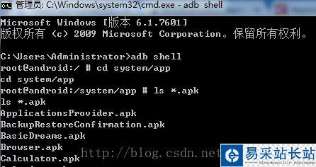 模擬器中預置的應用都放在手機的system/app目錄中,使用adb shell命令進入目錄查看計算器應用的apk名稱