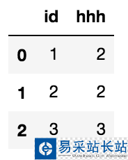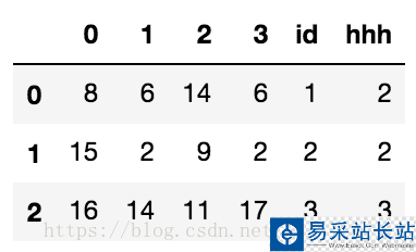 import pandas as pdimport numpy as npdata = pd.DataFrame(np.random.randint(low=1,high=20,size=(3,4)))data['id'] = range(1,4)# 輸出:其中,最左邊的0 1 2 為其索引