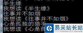 books=['半生緣','往事并不如煙','心是孤獨的獵手']for book in books: print(book)