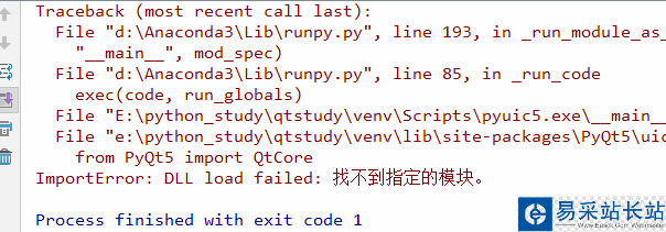 10、右鍵保存好的ui文件,選擇external tools->pyuic5生成代碼,天意弄人啊,沒想到報錯了我去,有些是不報錯的。。。居然找不到模塊,可以明明存在呀