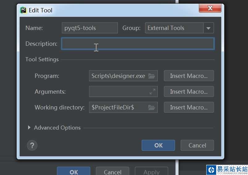 4.Working directory: $ProjectFileDir$是插入宏,表示項(xiàng)目文件目錄