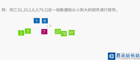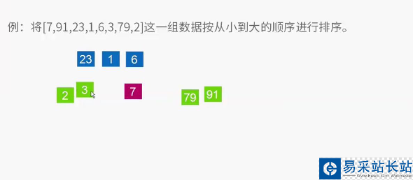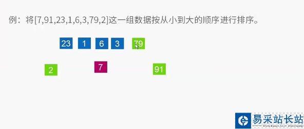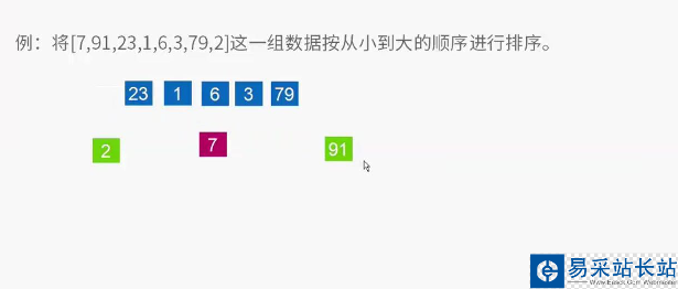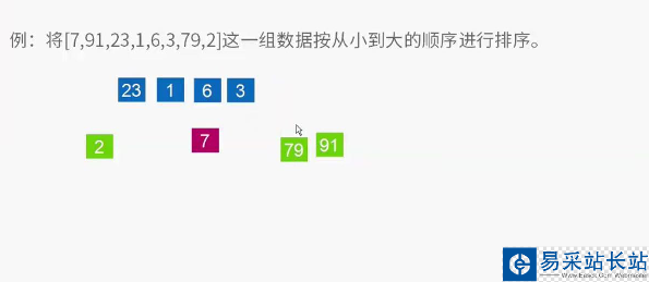 4、下面以[ 7 91 23 1 6 3 79 2 ]數組為例子,進行快排運算。