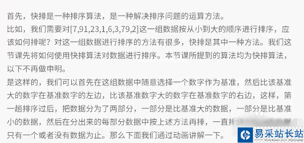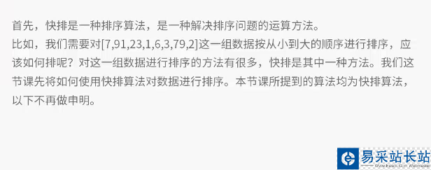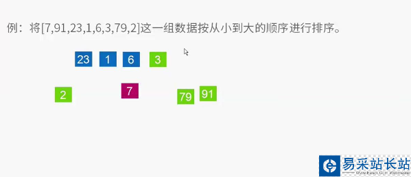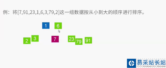 第一次排序之后分為比基準數據大或比基準數據小兩個部分,用剛開始的方法繼續排序,直到每個排序分組中只有一個數據或沒有數據為止。