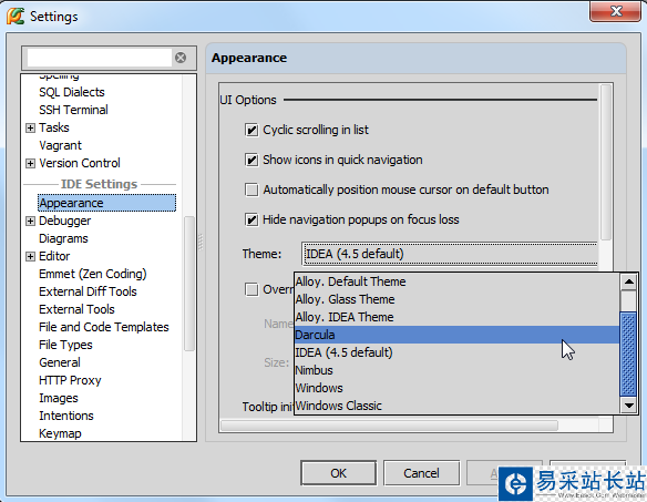 (2)在下面的對話框中,單擊“Theme”對應的下拉菜單,然后選擇一個你喜歡的主題:
