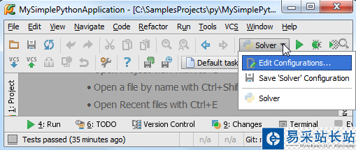 打開之前編寫的Solver.py文件,在編輯框中右鍵,選擇快捷菜單中的“Run 'Solver'”選項。