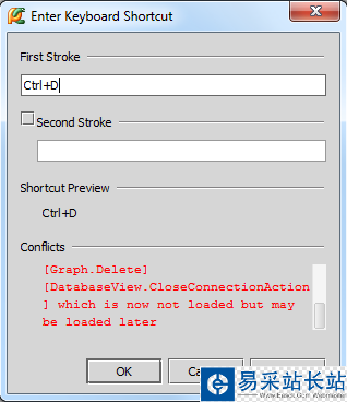 ?。?)接下來(lái)需要注意系統(tǒng)的警告提示:這個(gè)Ctrl+D的快捷鍵組合已經(jīng)存在,說(shuō)明Pycharm已經(jīng)將這個(gè)快捷鍵組合關(guān)聯(lián)到別的設(shè)置中去了,好在之前的設(shè)置并不常用,可以將它替換掉,因此單擊OK確定。