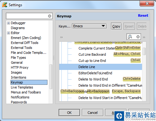 設(shè)想一下情況:你選擇了Emacs方案的快捷鍵配置,但這個(gè)配置方案里面并沒(méi)有預(yù)先定義好如何通過(guò)快捷鍵來(lái)實(shí)現(xiàn)刪除一行: