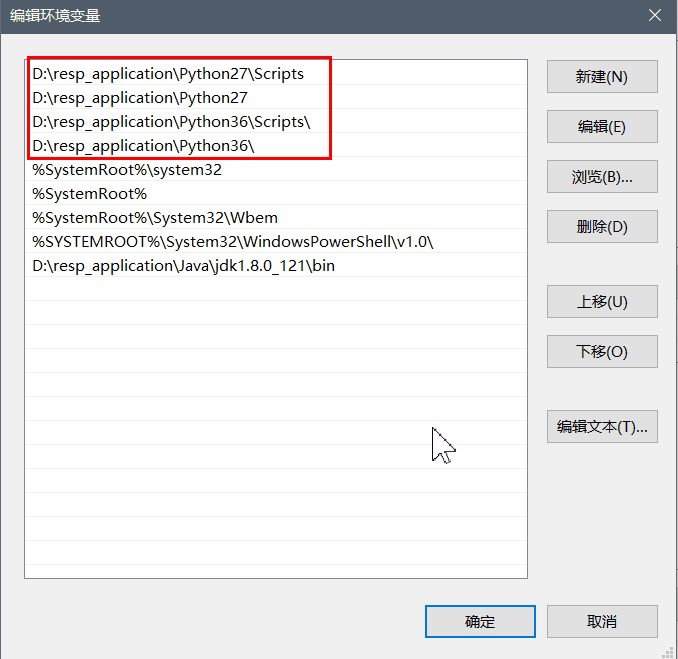配置環境變量,將python2和python3的路徑都配置到path環境變量下