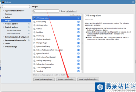 接下來點擊下方3個按鈕中間按鈕,Browse repositories...按鈕,打開所有插件列表。搜索mongo,選擇Mongo Plugin插件,點擊右側窗口安裝即可。