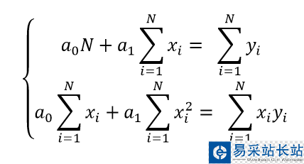 設 y = a0 + a1*x,我們利用最小二乘法的正則方程組來求解未知系數 a0 與 a1。