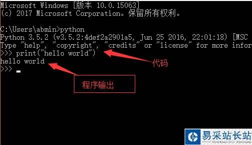 5.1在cmd命令中直接輸入:print("hello world")