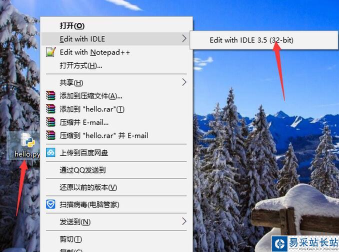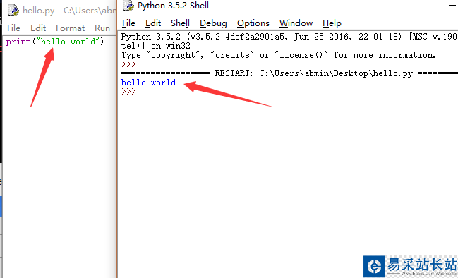 5.2新建一個hello.py文件,用IDLE方式打開輸入:print("hello world") 后保存用F5運行