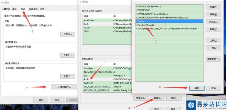 3.2在電腦 --> 屬性 --> 高級--> 環(huán)境變量--> path中添加 python所在路徑C:/python和C:/python/Scripts(后者是PIP安裝庫時所用)