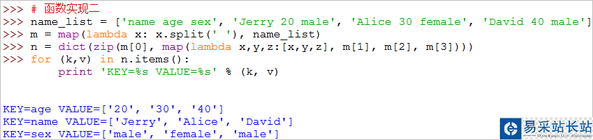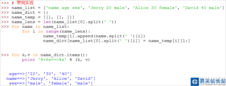 比如說將List = ['name age sex', 'Jerry 20 male', 'Alice 30 female', 'David 40 male']這種數據結構轉化成