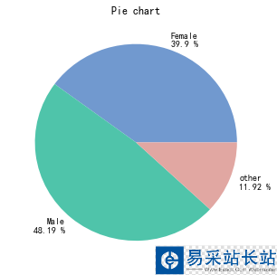 import numpy as npimport matplotlib.pyplot as pltimport matplotlib as mpl#解決中文亂碼不顯示問題mpl.rcParams['font.sans-serif'] = ['SimHei'] #指定默認(rèn)字體 mpl.rcParams['axes.unicode_minus'] = False #解決保存圖像是負(fù)號'-'顯示為方塊的問題 map = { 'Female': (malecol, '#7199cf'), 'Male': (femalecol, '#4fc4aa'), 'other': (othercol, '#e1a7a2')} fig = plt.figure(figsize=(5,5))# 整體圖的標(biāo)題ax = fig.add_subplot(111)#添加一個子圖ax.set_title('Gender of friends') xticks = np.arange(3)+0.15# 生成x軸每個元素的位置bar_width = 0.5# 定義柱狀圖每個柱的寬度names = map.keys()#獲得x軸的值values = [x[0] for x in map.values()]# y軸的值colors = [x[1] for x in map.values()]# 對應(yīng)顏色 bars = ax.bar(xticks, values, width=bar_width, edgecolor='none')# 畫柱狀圖,橫軸是x的位置,縱軸是y,定義柱的寬度,同時設(shè)置柱的邊緣為透明ax.set_ylabel('Proprotion')# 設(shè)置標(biāo)題ax.set_xlabel('Gender')ax.grid()#打開網(wǎng)格ax.set_xticks(xticks)# x軸每個標(biāo)簽的具體位置ax.set_xticklabels(names)# 設(shè)置每個標(biāo)簽的名字ax.set_xlim([bar_width/2-0.5, 3-bar_width/2])# 設(shè)置x軸的范圍ax.set_ylim([0, 100])# 設(shè)置y軸的范圍for bar, color in zip(bars, colors): bar.set_color(color)# 給每個bar分配指定的顏色 height=bar.get_height()#獲得高度并且讓字居上一點(diǎn) plt.text(bar.get_x()+bar.get_width()/4.,height,'%.2f%%' %float(height))#寫值plt.show()#畫餅狀圖fig1 = plt.figure(figsize=(5,5))# 整體圖的標(biāo)題ax = fig1.add_subplot(111)ax.set_title('Pie chart')labels = ['{}/n{} %'.format(name, value) for name, value in zip(names, values)]ax.pie(values, labels=labels, colors=colors)#并指定標(biāo)簽和對應(yīng)顏色plt.show()