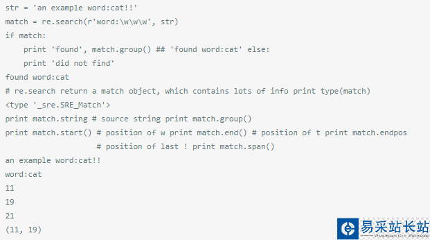 經常用match = re.search(pat, str)的形式。因為有可能匹配不到,所以re.search()后面一般用if statement。