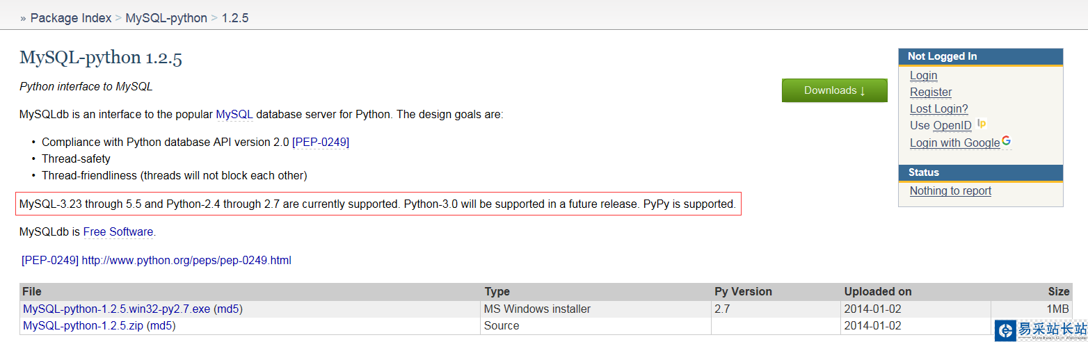 進行python前,應該先確定當前mysqldb的各個版本都支持python的哪些版本。部分截圖如下: